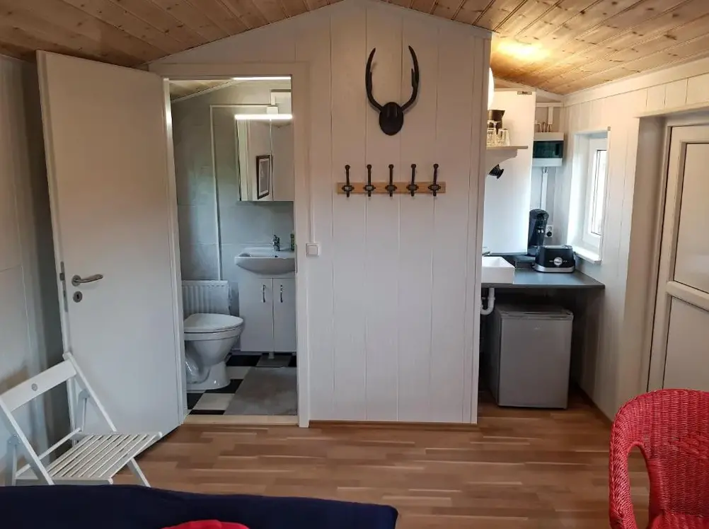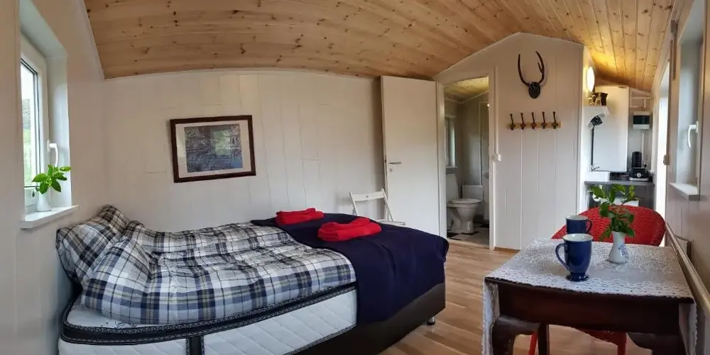 Við sáum reyndar norðurljósin. Staðurinn var ágætur. Eldhús hreint. Við báðum um 2 rúm þar sem ég var að ferðast með bróður mínum. Myndirnar passa ekki við svefnherbergið sem við leigðum. Dagrúmið var í raun þægilegt, en auka lak hefði verið gott. Það var óljóst veður og við þurftum að þrífa leirtau.